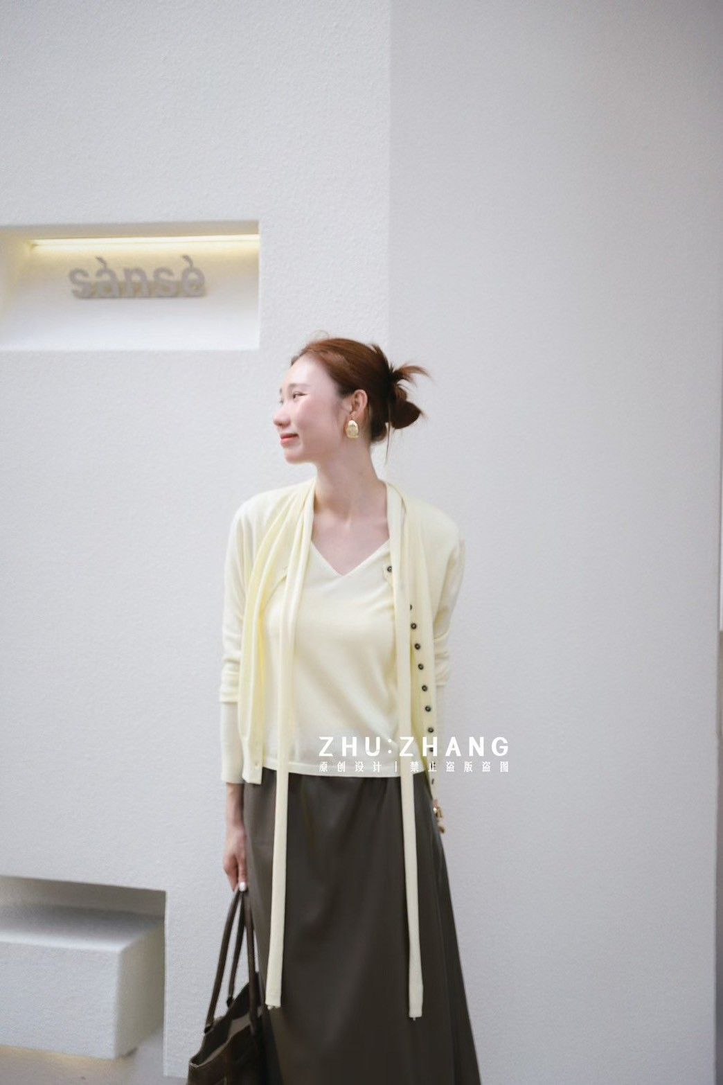 ✔ V 領剪裁修飾臉型,顯臉小又拉長頸部線條